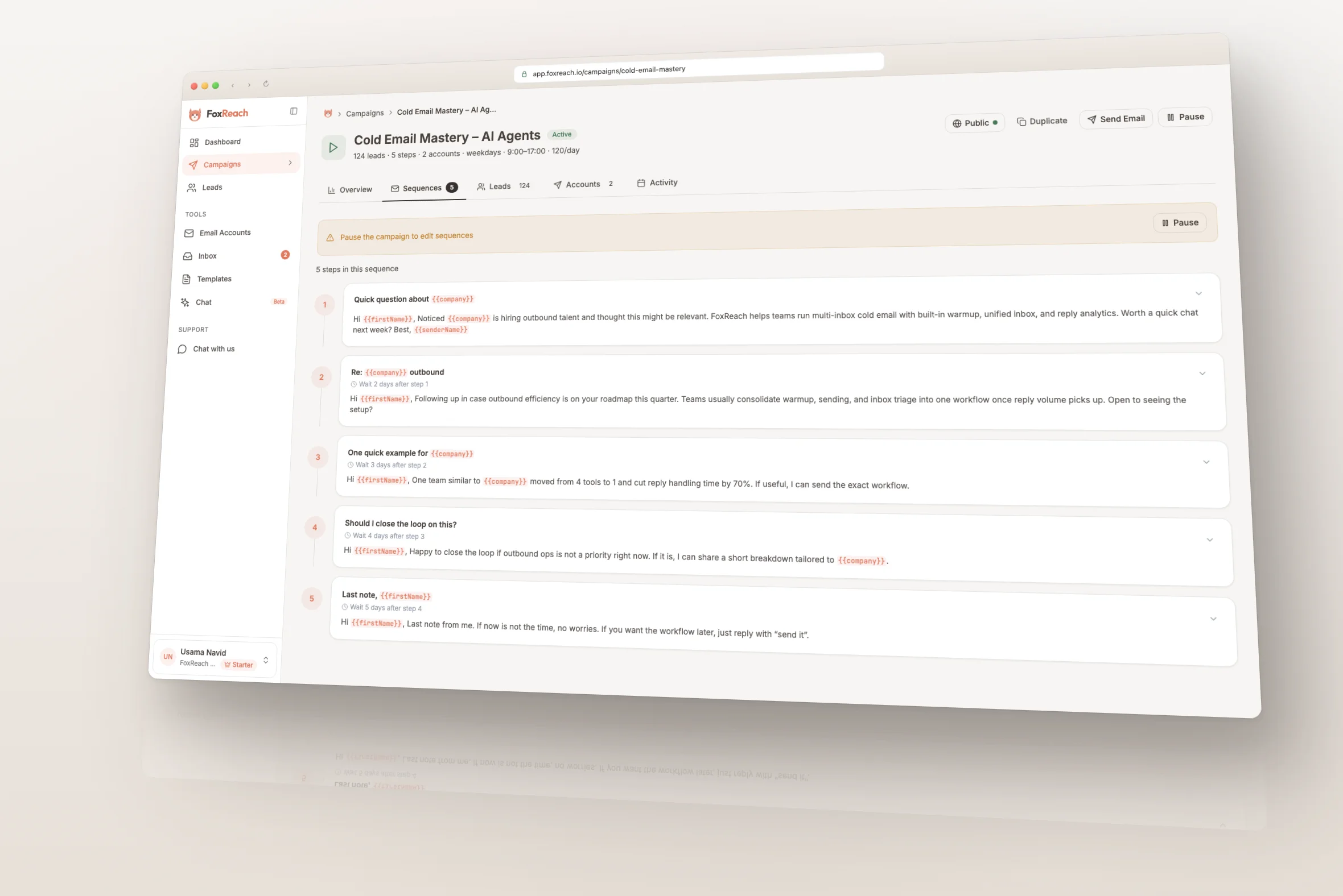 FoxReach supports dynamic variables that automatically populate with each lead's data: