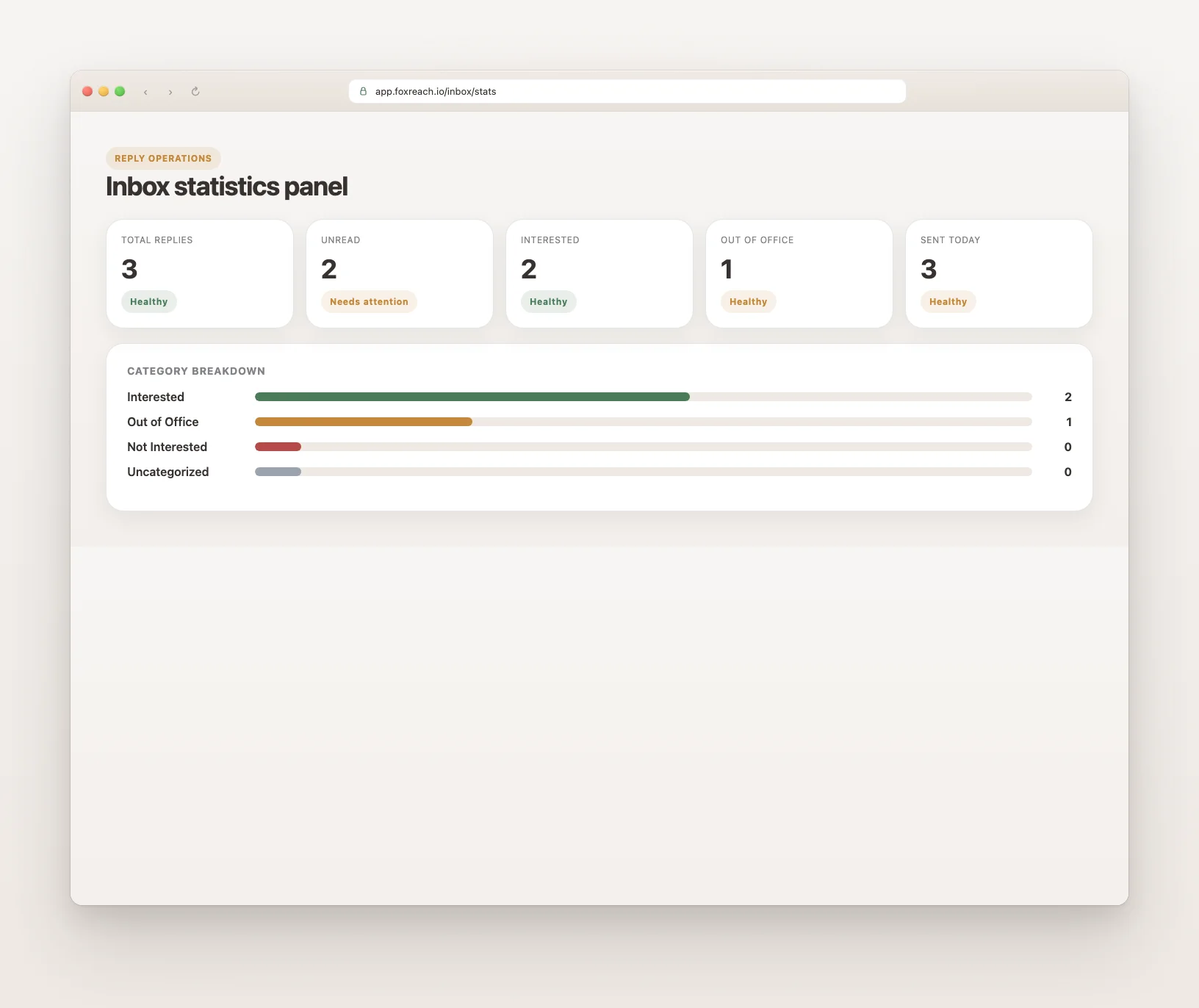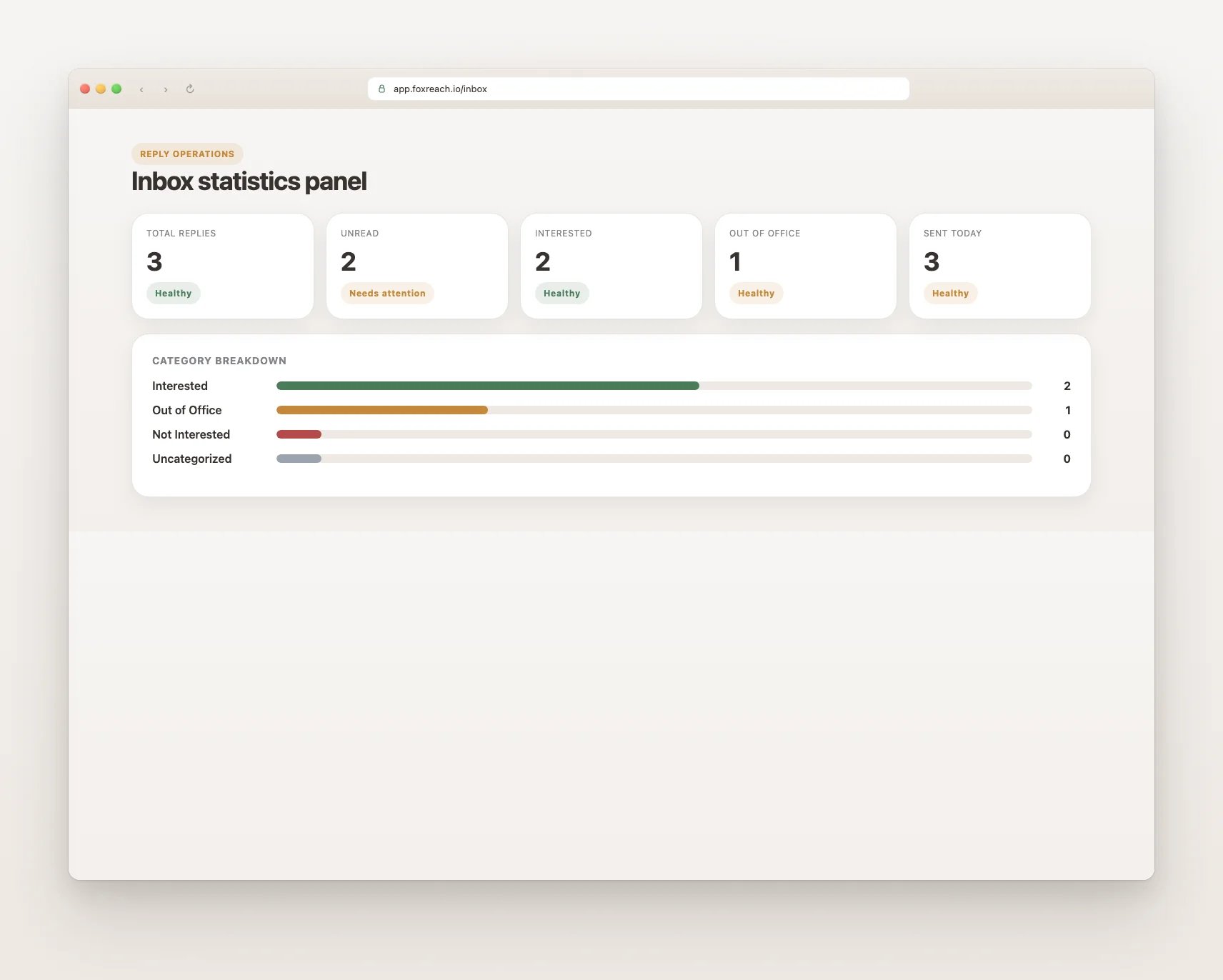 FoxReach lets you categorize every reply so you can prioritize your response and track campaign quality.