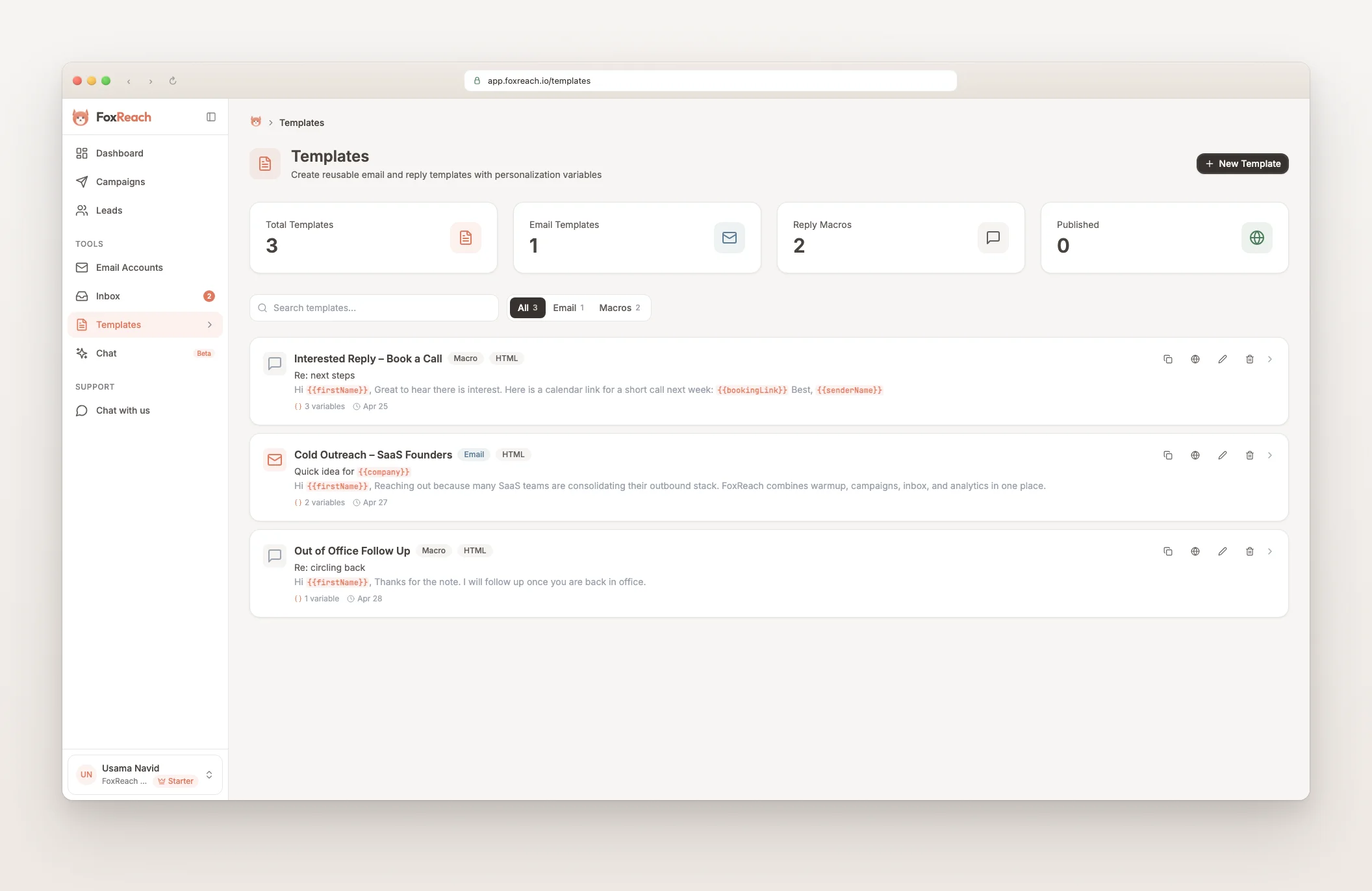 For common reply types, create reply macro templates in FoxReach so you can respond in seconds.